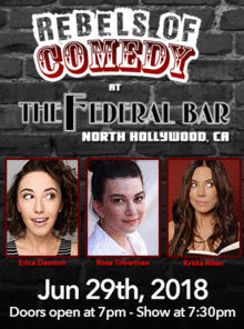 It's Rebels of Comedy at the Federal Bar in North Hollywood. Come out and see a night of live comedy, featuring an awesome lineup of professional features and headliner comedians.