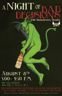 Get ready for a pub-crawl/scavenger hunt/fundraiser unlike anything you've ever experienced before. Brought to you by the minds at HomeGrown Theatre, we're looking to have a great time making Bad Decisions with you.