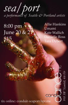Thu/Fri, June 20/21, 8:00 pm Tickets $15 Sea/Port is a curated performance of Seattle and Portland choreographers. Seattle, Wed June 19 through a partnership with the Seattle International Dance Festival, more info: www.phffft.org/sidf.