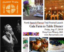 The GALA Farm to Table dinner is a fundraiser for the Capital Region Food and Agriculture Initiatives Roundtable (www.crfair.ca) Full details on the free North Saanich Flavour Trails Festival, Aug 18-19, can be found at www.flavourtrails.com