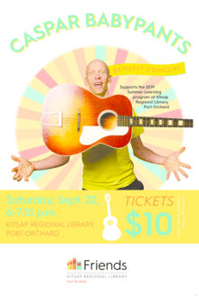 Children's musician Caspar Babypants will be performing to help raise funds for the Kitsap Regional Library Summer Learning Program 2019. Take the little ones to their first live show as Caspar performs hits from all his albums.