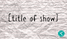 Jeff and Hunter, two struggling writers, hear about a new musical theatre festival. However, the deadline for submissions is a mere three weeks away. With nothing to lose, the pair decides to try to create something new with the help of their friends Susan, Heidi and Larry on the eighty-eights. With the cast in place, Jeff and Hunter begin a conversation about what to write about. Eventually, Jeff suggests they write about what to write about. They make a pact to write up until the festivals deadline and dream about the show changing their lives. [title of show]taken from the space on the festivals application form which asks for the [title of show]follows Hunter and Jeff and their friends on their journey through the gauntlet of creative self-expression. In the span of 90 minutes they write and perform their show at the festival and learn lessons about themselves as people, friends and artists. [title of show] is, above all, a love letter to the musical theatrea uniquely American art formand to the joy of collaboration. The musical received a Tony Award® nomination for Best Book of a Musical in 2009.