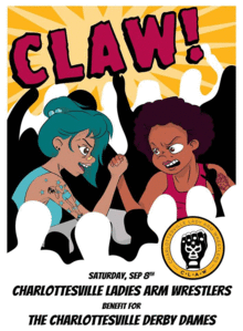Charlottesville Lady Arm Wrestlers (CLAW) is an awesome group of local ladies, arm wrasslin and acting foolish, to raise money for women initiated causes OR organizations that directly serve women.