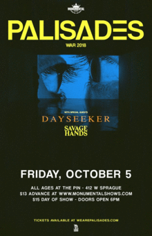 Palisades comes to Spokane to rock an all ages show with friends Dayseeker and Savage Hands!