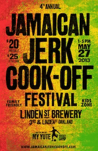 + the People's Choice Award + $4 raffle for soccer jerseys sponsored by Soccer4 + silent auction + craft beers + Harry Best's Shabang! Steel Pan Band + Dj's Wisdom, Black, Santero, Mr.E, Polo Moxquuz + kids' zone +bike parking provided by Richmond Spokes + Oakland Acupuncture & Integrative Medicine services - SORRY, NO DOGS ALLOWED. + and MORE UPDATES POSTED REGULARLY AT WWW.JAMAICANJERKCOOKOFF.COM