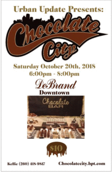 Urban Presents: Welcome To Chocolate City Chocolate Bar DeBrands Downtown (Ash Building) Fort Wayne 6:00pm-8:00pm Cost: $10.00 Chocolate Sampling and Sundae Bar