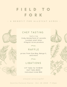 Table Captains: purchase a whole table to host 10 friends for a special VIP experience including personalized Chef time, meet a farmer, and a bottle of champagne for dessert!