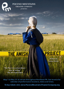 PMTC's first production of 2018 is Jessica Dickey's The Amish Project. "The Amish Project" is a fictional exploration of the tragic Nickel Mines Schoolhouse shooting in an Amish community and the path of forgiveness and compassion forged in its wake. "The Amish Project" will be performed in non-traditional, site-specific locations across Northeast Pennsylvania. A single actress performs all the roles in this thought provoking and compelling work. Allentown's Syd Stauffer and East Stroudsburg's Gillian Turner will perform. Confirmed venues are: Siamsa Irish Pub in Stroudsburg, The Red Stag Pub in Bethlehem, The Cooperage in Honesdale, The Water Wheel in Milford, Artists for Art Gallery in Scranton, Brewworks in Allentown and Posh in Scranton.