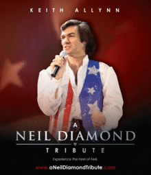 Experience the feel of Neil as Allynn unveils the story of Diamonds life through Neils own songs from the 60s through today, while weaving through his own comedic career change from an international top 10 Elvis, to Neil Diamond, all for the love of a woman. Allynn began his career in stand-up comedy at the age of 14 opening for such greats as Chris Rock, Tim Allen and Robin Williams. At 21, he discovered his musical talents while performing All Shook Up at a karaoke night. The girls went wild, and Allynn was hooked. For several years he continued to perform as an Elvis tribute artist and was voted a top 10 Elvis, by Graceland, in 2004. Later, trying to impress a girl who was a huge Neil Diamond fan, he called her on the phone and in his best Neil voice sang Hello Again from the Jazz Singer. It became their song, she became his wife, and he became The Diamond Image. Come see the story unfold live along with the story of Neil Diamonds struggles and triumphs, enjoying hits like Sweet Caroline, Song Sung Blue, Hello Again, Brother Love, America and many more. If you love romance, magical surprises, comedy and Neil Diamond music, you will love A Neil Diamond Tribute.
