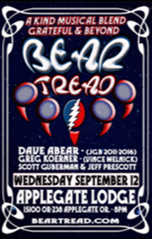 Bear Tread, a new and exciting band inspired by the Grateful Dead and featuring musicians who have toured with members of the Dead as well as members of legends from The Neville Brothers, Jerry Garcia Band and The Band, are out and on fire NOW!