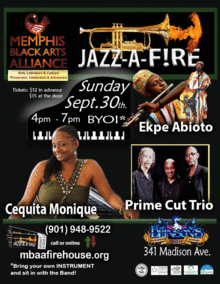 ð"¥ð"¥ð"¥JAZZ-A- FIRE TODAYð"¥ð"¥ð"¥ Sunday September 30, 2018, our honorees will be Ekpe Abioto and Cequita Monique! Also, hosted by the spectacular Cequita Monique accompanied by the Prime Cut Trio: Andre Holman, Audie Smith & Kent Suggs!! Go to our website at www.mbaafirehouse.org to get your tickets NOW. Tickets:$12 Advanced $15 Doors/2187411027959725