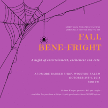 We have officially achieved our 501c3 Non-Profit status and we are hosting a fundraiser to celebrate! We will be premiering three original suspenseful short plays by local playwright Becky McLaughlin as well as announcing our ENTIRE 6th season! Come join us for some drinks, appetizers, raffles, a silent auction and more to help us kick off our 6th Season with a BANG!
