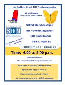 Come meet & greet fellow HR colleagues from Northeast MS.