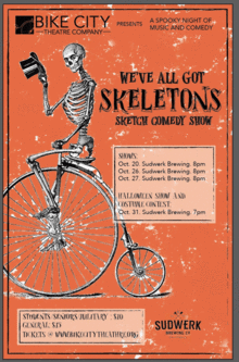 Join Bike City Theatre Company at Sudwerk Brewing for an evening of chills, thrills, and spooktastic comedy! Have a beer and laugh 'til it hurts because this show is really funny and that's a promise. Costumes are totally encouraged- we'll be having a costume CONTEST during intermission of our Halloween night performance. Get your tickets now- they'll be gone before you know it.