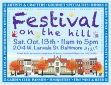 Bolton Hills Festival on the Hill is coming up soon: Saturday, October 13, 2018, 11am-5pm, at the corner of W. Lanvale and Bolton St. This Baltimore City neighborhood celebration has been a fall fixture for over sixty years and includes food, drinks, live entertainment, artists and other vendors (New - Photo Booth!) and a HUGE Kids Zone that this year will have a basketball court, two different bounce houses, and activities for kids that are too numerous to name. Proceeds from the Festival benefit many Bolton Hill organizations including Bolton Hill Nursery, The Samaritan Community, Brown Memorial Tutoring Program, Jubilee Arts, Dance Happens and more.