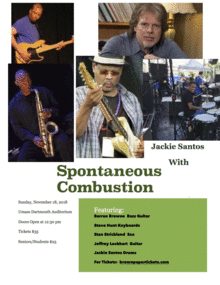 Six String Music Company presents an afternoon with South Coast sensation, drummer and Berklee instructor Jackie Santos and Spontaneous Combustion. Featuring Barron Browne on Bass Guitar, Steve Hunt Keyboards, Stan Strickland Saxophone, and Jeffrey Lockhart Guitar. This concert and workshop will be held at the University of Massachusetts Dartmouth in North Dartmouth, MA on Sunday, November 18, 2018 from 1-4pm. There is no additional cost for the open workshop.