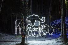 Zoo Lights are the Alaska Zoo's answer to the darkness of the Alaskan winter! Let us light up your winter evenings with custom light displays with holiday and animal themes. Many of our displays are animated, along with music or moving lights. We also have the calm and peaceful trail canopies, arches of light for visitors to walk under while admiring the zoo animals in winter. Our Gift Shop, Coffee Shop and Discovery Center are open for business and warm ups.
