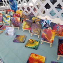 Learn how to mix paints, a different technique each class ( swipe, tree ring, dirty pour, chain pull ect...) Includes practice paper coasters, 2-8x10 canvases. $60.00