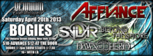 Affiance, Sylar, and Beyond the Shore are playing at Bogies in Albany, NY at 297 Ontario Street. Doors open at 7pm.