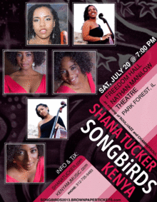 Please join Soul/Jazz singer/songwriter KENYA & ChamberSoul cellist and singer/songwriter SHANA TUCKER at the beautiful FREEDOM HALL - NATHAN MANILOW THEATRE in the lovely bedroom community of Park Forest, IL. Each "Songbird" will play a set, and then team up for a duet or two! Traveling to Chicago all the way from Las Vegas (where she is the cellist and vocalist for "KÀ" by Cirque Du Soleil,) Shana will join her musical sister, Kenya, for a night of music you don't want to miss!