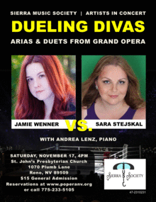 A fabulous evening of beautiful singing by Soprano Jamie Wenner joined by Mezzo-Soprano Sara Stejskal. This lovely concert will be around 75 minutes in length with open seating. This is a family event.