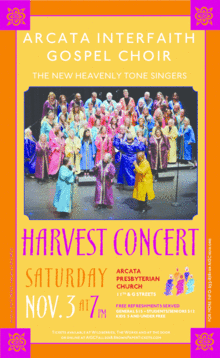 The Arcata Interfaith Gospel Choir will perform joyful, inspiring songs at the annual Harvest Concert on Saturday, November 3, at 7 p.m.