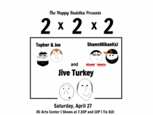 Hey Kids! Did you miss our show wayy back on last night, or did you come out, and find us so irresistibly funny and sexy that you had to come back for more? Well guess what, buttercups? Jive Turkey returns to DCAC April 27th for an absolutely FUNTABULOUS show, featuring us and the two other incredible improvising duos: Topher and Joe and ShawnMikael(s)! (We asked Batman and Robin, but their rider was just ridic!)