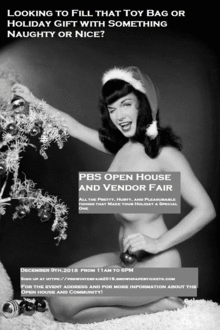 PBS is happy to host a small open house and vendor fair that supports the space and gives the local community a chance to grab those wicked, kinky and otherwise nifty items supplied by some of your local crafty folks.