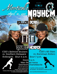 Charlottesville Derby Dames, Belmont Bruisers vs. Southern Delaware Rollergirls Doors at 3 pm, Bout at 4 p.m.