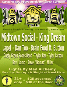 Shanty Shack Brewing is partnering with Starlets Web Presents to bring you the most amazing fall music festival ever (AKA...Local summer). Shake the Shack will be an all day festival with amazing music. food, beer and art.