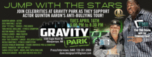 Albuquerque's Ultimate Trampoline Park Description: Gravity Park is a cutting-edge entertainment, fitness and sports facility unlike anything you have ever experienced. The first of its kind in New Mexico, Gravity Park is the ultimate venue for active social outings, intense individual workouts and memorable birthday parties. Albuquerque's Ultimate Trampoline Park! Phone: (505) 407-0954 Email: info@gravitypark.us Website: http://www.GravityPark.us Hours: Mon - Thu: 9:00 am - 9:00 pm Fri - Sat: 9:00 am - 12:00 am