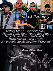 82 Deluxe and The Danny Millsap band are throwing a New Years Eve party at the Laton Lions Club Concert Hall. There will be a No-Host Bar, Party Favors, Huge Dance floor, room for everybody! RV Parking Available and a Food Truck. For Information Call, Dalton @ 559-816-3006 or Danny @ 559-416-8869 Its gonna be a Honky Tonk'in good Time