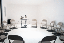 The three performers invite 12 guests to participate in a ceremony that investigates the senses through the bizarre, the familiar and the transformative. Each guest chooses a specific instruction, resulting in a unique experience of personal, interpersonal and collective patterning. The last section of the work is a structured conversation with guests and performers based on Liz Lerman's "critical response" process. The participation of guests is essential as it evolves with every group. A MENOS QUE QUIERAS BAILAR explores our experiences of gaze, social etiquette, and community.