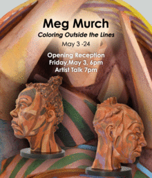Meg Murch concludes her residency at PNW with this exhibition of work created in the past 18 months. Three bodies of work will be on display. All are explorations of color on sculpture. larger than life portrait busts and expressive self-portrait masks, large abstracted figures exhibiting Archipenko and Picasso influences, and finally, hoop-dancing-inspired wall pieces.