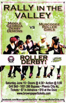The Muscogee Roller Girls, Columbus GA's hometown derby league, take on the Middle Georgia Derby Demons in our final home bout of our inaugural season. Roller derby is a full-contact sport and we're playing it on the flat track. Expect hard hits, exciting game play and a fight to the finish.
