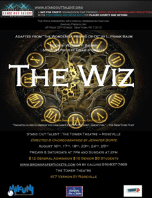 The Wiz: The Super Soulful Musical "Wonderful Wizard of Oz" is a musical with music and lyrics by Charlie Smalls and book by William F. Brown. It is a retelling of L. Frank Baum's The Wonderful Wizard of Oz. Set with an Urban Steam Punk setting - our four friends encounter and overcome obstacles along their journey and find that when you 'believe you can' - you can achieve your wants, needs, and dreams. A beautiful lively score performed by an an amazingly talented Stand Out cast!