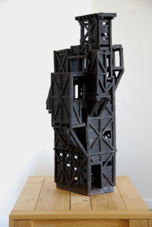 This exhibition seeks to not only call attention to the modernization of prospecting, but to also take a step back to the roots and the perhaps simple (but unruly) days of gold prospecting and other mining scenes that sprung up in mineral rich regions. It is in this kind of spirit that the sculptures in this show create a sense of a different time and place where wood-built structures ruled.