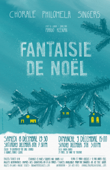 This year's Christmas concert will serve up a selection of classical and popular songs that are sure to fill you with the magic of the Holidays. We hope to see you there. Tickets: $18. Students and seniors (65+):$12. Children 12 yrs and under: FREE. For more info, send us a message on Facebook (facebook.com/choralephilomela) or call 514-605-0015. **** Notre concert de Noël 2018 présentera une sélection de chansons classiques et populaires qui vous rempliront de la magie du temps des Fêtes. Nous espérons vous y voir. Billets: 18$. Étudiants et Âge d'or (65+) : 12$. Enfants 12 ans et moins : GRATUIT! Pour plus d'infos, envoyez nous un message sur Facebook (facebook.com/choralephilomela) ou appelez le 514-605-0015.