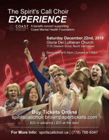 Saturday December 22nd, 2018 at 7:00pm Gloria Dei Lutheran Church, 1110 Gladwin Drive, North Vancouver https://goo.gl/maps/t8iuJoJJp8J2