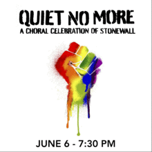 Quiet No More, a new work co-commissioned by the New York City Gay Mens Chorus, Gay Mens Chorus of Los Angeles, The Stonewall Chorale, and others commemorating the 50th anniversary of the Stonewall riots that launched the LGBTQ rights movement.