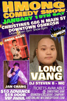 We had such a great turnout and lots of people asking us to do it again so...Wisconsin Comedy Tour is bringing you the 2nd Hmong Comedy Show at Christine's Bar, Downtown Oshkosh.
