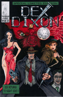 "Dex Dixon; When the Average Dick Won't Do" Dex Dixon, a hard-boiled paranormal investigator at the beginning of the end of his career, lives in Our Fair City, a gritty urban jungle just across the murky river from Night Side, a city populated by the movie monsters of old. It's been ten years since Dex was exiled from Night Side, when a mysterious woman arrives requiring his special skills and he finds himself returning to his old haunts, and an old flame. The Adventures of Dex Dixon is a Film Noir, Horror, Comedy Musical filled with puns, guns, vixens, vamps, monsters, music, and mayhem and yes, Puppets!