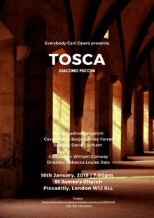 Following their success in 2015 with Verdi's Otello, Everybody Can! Opera is thrilled to be returning to St James's Church, Piccadilly with one of Puccini's most loved operas, Tosca.