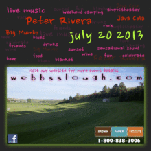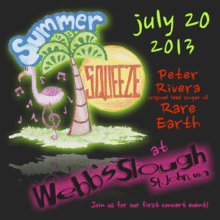 Summer Squeeze is an amazing concert event at Webb's Slough in St. John, Washington. 3 bands; Peter Rivera, Big Mumbo & Java Cola will rock the natural amphitheater carved into the Palouse hills July 20th. Webb's Slough is bring in the best sound and lighting in the region, plus we offer on-site camping, food & drink vendors to make your concert experience unforgettable and pleasant!