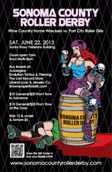 Come out and watch Sonoma County Roller Derby's Home Wreckers take on the Port City Roller Girls on June 22nd at The Veterans Memorial Building in Santa Rosa(across the street from the fairgrounds).