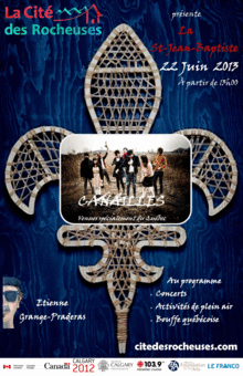 La Cité des Rocheuses célèbre à nouveau la Saint Jean. Retrouvez nous le samedi 22 juin de 13h00 à 18h00 pour un bel après midi de festivités! Au programme de nombreuses animations pour tous les âges et le clou du spectacle: le concert du groupe Canailles, venu tout droit du Québec, pour nous faire découvrir leur premier album "Manger du bois", plutôt décalé!