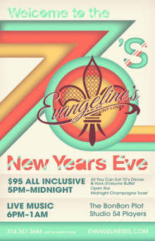 70s THEMED ALL YOU CAN EAT DINNER BUFFET & HORS D'OEUVRES 5pm - Midnight.