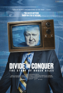 Divide and Conquer: The Story of Roger Ailes deftly fuses the personal, the political and the just plain surreal as it charts the origin, rise and downfall of Fox News Chairman and CEO Roger Ailes. Variously called a bulldog, a kingmaker, and the Ernest Hemingway of campaign advisors, Ailes was the wizard of Oz. But he collected talent like dolls, and became consumed by paranoia about his own personal security. I think Roger thought he could control the little genie in the bottle, said former Fox News personality Glenn Beck. But he couldnt.