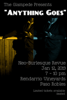 Wine will be for sale by the glass and the bottle. This will be an intimate affair; the tasting room is relatively small, so be ready for a fun time! Bring a sweater, it's chilly in the tasting room. This show is one-of-a-kind in Paso Robles, and is not to be missed. 21 and over only. Costumes are welcome!