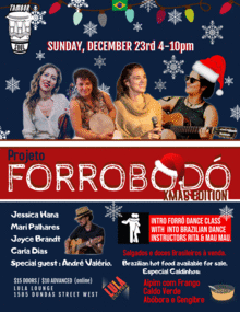 Enjoy a whole afternoon of Forroó music and culture. Get warm dancing and trying some Brazilian food. Kids are also welcome. Intro Forró dance class, will take place before the live show. Take advantage to interact, meet new people and dance the night away! Here some words from our dance instructor, Rita: Just open your mind and your heart to another culture. Forró is as important and relevant for Brazil as samba. It is the most playing and dancing style in Brazil. It's the perfect representation of how Brazil was built! There are Portuguese influences, aborigines, and African influences too... It's a beautiful and fun music style. The dance is very social and easy to learn... U really don't need to know the music to enjoy!!! Most of my students are not Brazilian, and a big part of the people who go to Forró parties are not Brazilian and don't know the kind of music. Just give a chance and try, We know that u will fall in love too.